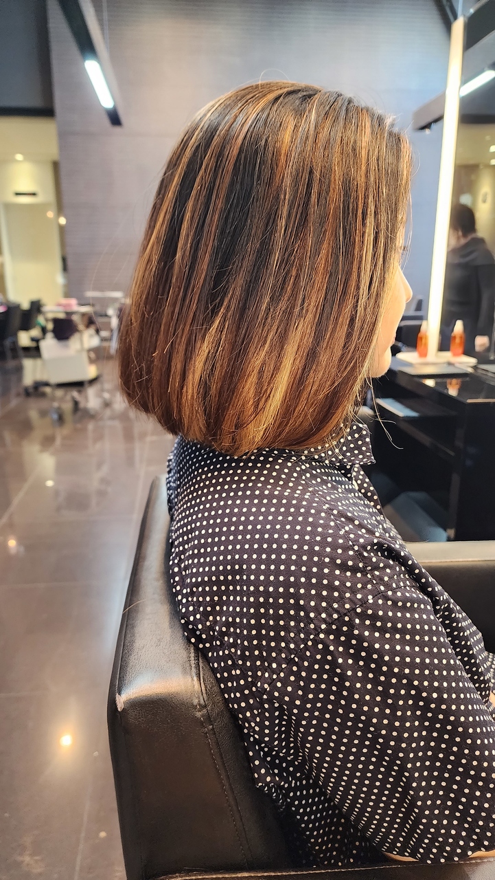 ボブ/ワンレン/黒髪/ハイライト