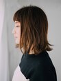 肩につくかつかないくらいのミディアムヘア。絶妙なミディアムラインの長さなのであえて外ハネにすることでさらにかわいくなります!バングは眉上のショートバングでちょっと個性的にキュートになり少し変化をつけたいかたにオススメです!