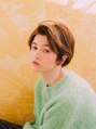 トップが長めのショートボブ!ショートですが、トップが長いことでかきあげ風にできたり、巻いたりアレンジの幅が効く万能ショートボブです!!カラーは落ち着いたブラウンカラーに細くハイライトを!パーマをかけるとスタイリングが楽になりますよ!