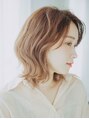 オレンジ味の強いカラーを肩につくくらいのミディアムにカットし、トップにボリュームを出すために少しレイヤーを入れたスタイル。顔まわりの髪の毛は外に巻いてあげると大人っぽいエレガントな印象になります。