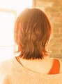 アプリコットブラウンで柔らかな春にかけて楽しめるお色に☆重たすぎないウルフで今っぽい女性らしい可愛いく☆顔まわりにふんわりボリュームを持たせながら首のラインは綺麗に見せてくれるよう、首にそわせながら外ハネに☆【橋本/インナーカラー】