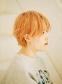 マッシュベースのショートスタイル!全体的にラフ感が出るように毛先にランダムにハネを加えてカジュアルなイメージに!ヘアカラーはショートにピッタリのペールオレンジ系のハイトーンカラーで小慣れショートがオススメ!【橋本/イルミナカラー】