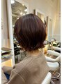 ぱつんとボブにオーガニックカラーでツヤ感を足しました!赤味の強い暖色カラーで血色感高めに仕上げております!乾かすだけだと内巻きボブに。アイロンで外巻きにして楽しめる欲張りヘアです!カット/オーガニックカラー/ヘッドスパ
