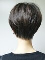 前髪長めのミニマムショートボブ。襟足や耳まわり、前髪を柔らかくなじむようにカットしてます。クールだけど女性らしさを大切にしてます。
