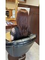 ピンク×ブラウンの色味でツヤツヤな質感UPです☆レイヤースタイルになるので、毛先を軽く巻くだけでふんわりなスタイルになります♪