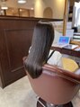 シンプルなナチュラルストレートは艶仕上げに!ロングでも重くならない様なオリーブベージュで透明感アップ!まとまりがあるのに軽い仕上がりです♪