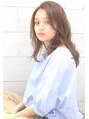 センターパートにナチュラルなワンカールでゆるい動きを。アンニュイカールが大人かわいい!レイヤーを入れたカールスタイルとベージュカラーで♪