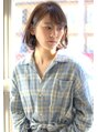 耳かけですっきりとしたボブスタイル。毛先をハネさせて遊びをプラスしてます☆顔回りはすっきりしていますが、襟足に動きがあるので小顔効果も◎カラーはミントアッシュで赤味を消して、柔らかさを。