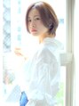 丸みのあるショートは襟足を少し長めに残してメリハリを。大人かわいいひし型シルエットのショートボブはカットでキマる!やや前下がりのラインと抜け感のある前髪で小顔力アップ!耳かけで違う表情にしてみるのもOK☆透明感のあるベージュカラーでツヤ感を!
