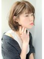 襟足に軽く動きをつけたひし形のショートボブスタイル!耳かけすることですっきりとお洒落な印象に☆毛先を遊ばせるようにワックスを付けてナチュラルな印象に!ベージュカラーで柔らかい印象に♪