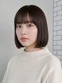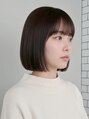 あご下の長さのぷつんとしたボブ+暗めの柔らかグレージュカラー