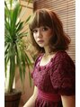 甘めバングにやわらかカールを忍ばせて空気感をプラスしたミディアムロブ。透けるようなベージュブラウンとランダムカールでシフォンのような柔らかい質感に仕上げます。