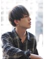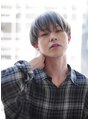 ブリーチを2回(元々ハイトーンの場合は1回)し、トーンを上げた後、8トーンのスモーキーグレージュをオン、カットは直線を意識し、スライドカットで束感を出しました。シャープ感をカットや色で表現したメンズスタイルです!!