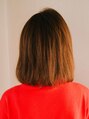 カットはシンメトリーで重めのミディアムボブに◎セットで内巻きにも外巻きにもできる肩ぐらいの長さが今っぽくて可愛い仕上がりに。カラーは自然に少しくすませたナチュラルブラウンでカットとスタイリングが生えるヘアスタイルです♪