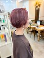マッシュショート×くすみピンク
