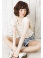 重軽バング、26ミリと32ミリのコテでふんわりとカールをつけました。最後に、トップに動きがでるように細かくスライスをとってリバースカールを入れています。スプレーワックスでキープしてふんわりと仕上げました。【錦糸町/錦糸町北口/錦糸町駅】