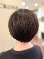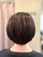 トップとサイドは短めでふんわり感がでやすく、対して襟足は長め。襟足はすかすかにせず適度に重さを残してなるべく収まりよいスタイルに。