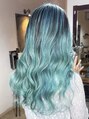 【透明感カラー】ターコイズブルーバレイヤージュ×ブリーチ2回