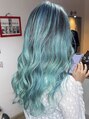 【透明感強め】ターコイズブルーバレイヤージュ×ブリーチ2回