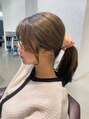 ナチュラルなレイヤーで動きと軽さを出した、大人可愛いスタイル。顔まわりカットで小顔見えと女性らしさをプラス。ツヤ感のあるブラウンカラーで、上品さと抜け感を両立。巻いてもストレートでも扱いやすく、毎日のスタイリングが簡単なのもポイント◎