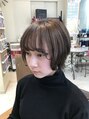 襟足スッキリのショートスタイル毛先を外ハネで遊ばせると今っぽくてさらに可愛いです^ ^前髪は大人気モテバング、カラーはフォギーベージュで柔らかい印象に☆