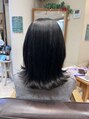 韓国風 くびれミディアム ブルーブラック 外ハネミディ 髪質改善
