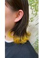 毛先にブリーチ2回してます♪ケアブリーチを使用してるので、切れ毛はほとんど無いですよ★イエローのカラーを入れてるのは、きっと富山ではいないはず!!!目立ちます♪外ハネも可愛いですよね(^ ^)