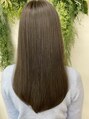 カットはツヤ感を重視して、重めで、パッツンぎみにカットしてます★カラーは、明るすぎないけど、くすみ感が欲しい!って方にオススメの色になってます♪グリーンがアクセントに効いてますね(^ ^)!