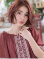 【スタイルは★ブックマーク★が便利】くせ毛風カールのフェミニンボブは個性的レッド系カラーでぐっとオシャレな髪型に◎ナチュラルボブや大人ボブ、前下がりボブやミニマムボブなどヘアアレンジもOK!耳かけも大人かわいい。(メイク担当:北浦和店 棟方)