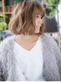 【スタイルは★ブックマーク★が便利】ゆるふわくせ毛風カールがキュートなフェミニンボブ。斜めバングと合わせて大人かわいい印象に。ナチュラルボブからのイメチェンにGOOD。耳かけや厚めバングも個性的でラブガーリー。(メイク担当:北浦和店 棟方)