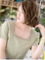 【スタイルは★ブックマーク★が便利】前下がりフォルムで小顔に見せ、くせ毛風カールで抜け感を出した大人ボブ。アシンメトリーなアレンジでアンニュイな雰囲気に。ナチュラルボブや前下がりボブからのイメチェンにオススメ。(メイク担当:川口店 成田)