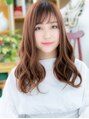 【スタイルは★ブックマーク★が便利】頬ラインからのゆるふわくせ毛風カールでフェミニンに仕上げたラフロング。甘いカラーで大人かわいい印象。グラデーションカラーや3Dカラーで外国人風にグラマラスにしてもOK。耳かけや前下がりで小顔に仕上げても◎