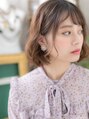 【スタイルは★ブックマーク★が便利】透け感あるオン眉の斜めバングで目元を印象付けたくせ毛風ゆるふわミディ。ナチュラルボブやフェミニンボブ、大人ボブや前下がりボブからの伸ばしかけに◎の髪型。耳かけも大人かわいい。(メイク担当:北浦和店 棟方)
