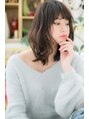 【スタイルは★ブックマーク★が便利】重めスタイルが新鮮で大人可愛い外ハネゆるふわミディ。斜めバングや厚めバングで目力強調し、サイドの前下がりラインで小顔に。ひし形シルエットで美人顔。耳かけやくせ毛風ウルフもGOOD(メイク担当:北浦和店棟方)