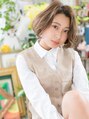 【スタイルは★ブックマーク★が便利】ナチュラルミックスウェーブでラフな質感に仕上げたこなれフェミニンボブ。前下がりで輪郭カバーして小顔見せ効果。ナチュラルボブや大人ボブからのイメチェンにオススメ。無造作なかきあげや耳かけも大人かわいい髪型。