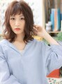 【スタイルは★ブックマーク★が便利】オン眉でガーリーに仕上げたゆるふわミディ。毛先パーマでエアリーに仕上げれば黒髪やローライトでも重くなりません。前下がりで小顔見せ。斜めバングや厚めバングで目力UPも大人かわいい。(メイク担当:北浦和店 成田)