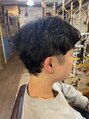くせ毛をいかしたワイルドショート センターパートだけど綺麗にまとめすぎずにあえてくずしたルーズな感じが男らしくて◎スタイリングはオイルグリースを使用