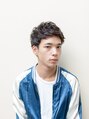 ツーブロックとスッキリした襟足が特徴の、高感度なショートヘアです。無造作な束間とパーマによるランダムな動きがかっこいいスタイルです。