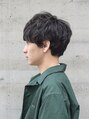 重めのマッシュショートをベースに、ピンパーマでニュアンスをつけたくせ毛風ショートです。黒髪でも柔らかい雰囲気になるので、ビジネスマンにもオススメです。