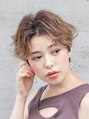 お洒落な印象になりやすいセンターパートのショートヘアです。ニュアンスパーマでくせ毛風の動きを出しているのがポイントです。ナチュラルな中に、一人一人に合わせた【可愛い】ポイントを作ります。エアリーショート グレージュ ひし形シルエット