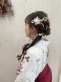 大人可愛い和装ヘアセットワンサイドローポニーテール編み込み