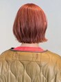 ピンクブラウン ブリーチ ダブルカラー 切りっぱなしボブ 20代