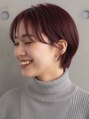 おしゃれな大人のレッドカラー バーガンディー×耳掛けショート