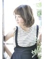 シンプルなナチュラルボブですが随所に仕掛けが‥‥前髪と顔周りで小顔に見えるようなおくれ毛、暗すぎず明る過ぎないスモーキーブラウン!女性のよくあるご要望が全て叶えられる大人ボブスタイル♪ 根元暗めのグラデーションカラーで透明感アップ!