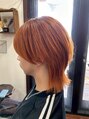 メンズヘア透明感ハイトーンコーラルオレンジウルフカット