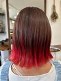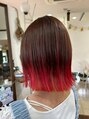 チェリーレッドグラデーション切りっぱなしナチュラル外ハネボブ