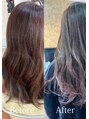 【気に入って頂いたスタイルは、ブックマークをしてご提示ください】ツヤと透明感が出て柔らかい質感もプラスしてくれるカラー!顔色が良く見える似合わせカラーならお任せ下さい!このスタイルをご希望の場合は小林をご指名下さい!