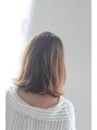 肩の高さで表面に少しだけレイヤーを入れて軽さを出しています。カラーリングは重い印象にならないようにアッシュやグレージュなどの寒色系の色味で根本から毛先にかけてグラデーションになるようにしています。