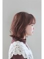 外はねミディアムボブ。必要に応じて緩くパーマをかけたます。大き目のコテで毛束の中間から毛先を巻いても再現できます。バレイヤージュのテクニックで動きが出るようにカラーリング。