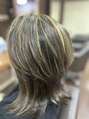 全体にハイライトを入れると白髪が伸びてもあまり気にならない今回は、ベースカラーはフォレストを使用してグリーン系に全体を染めた後にブリーチでハイライトを同時に入れてますあまり黄色味が苦手な方ならその後にまたカラーをのせて違う色にも出来ます